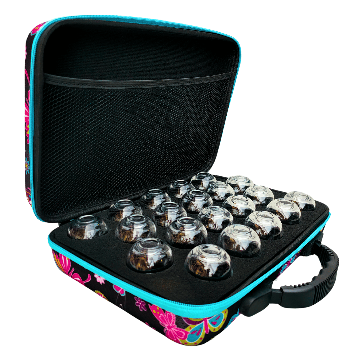 wykonaną z twardej pianki EVA, która chroni bańki z zewnątrz, a piankowe wypełnienie w środku utrzymuje bańki, chroniąc je.