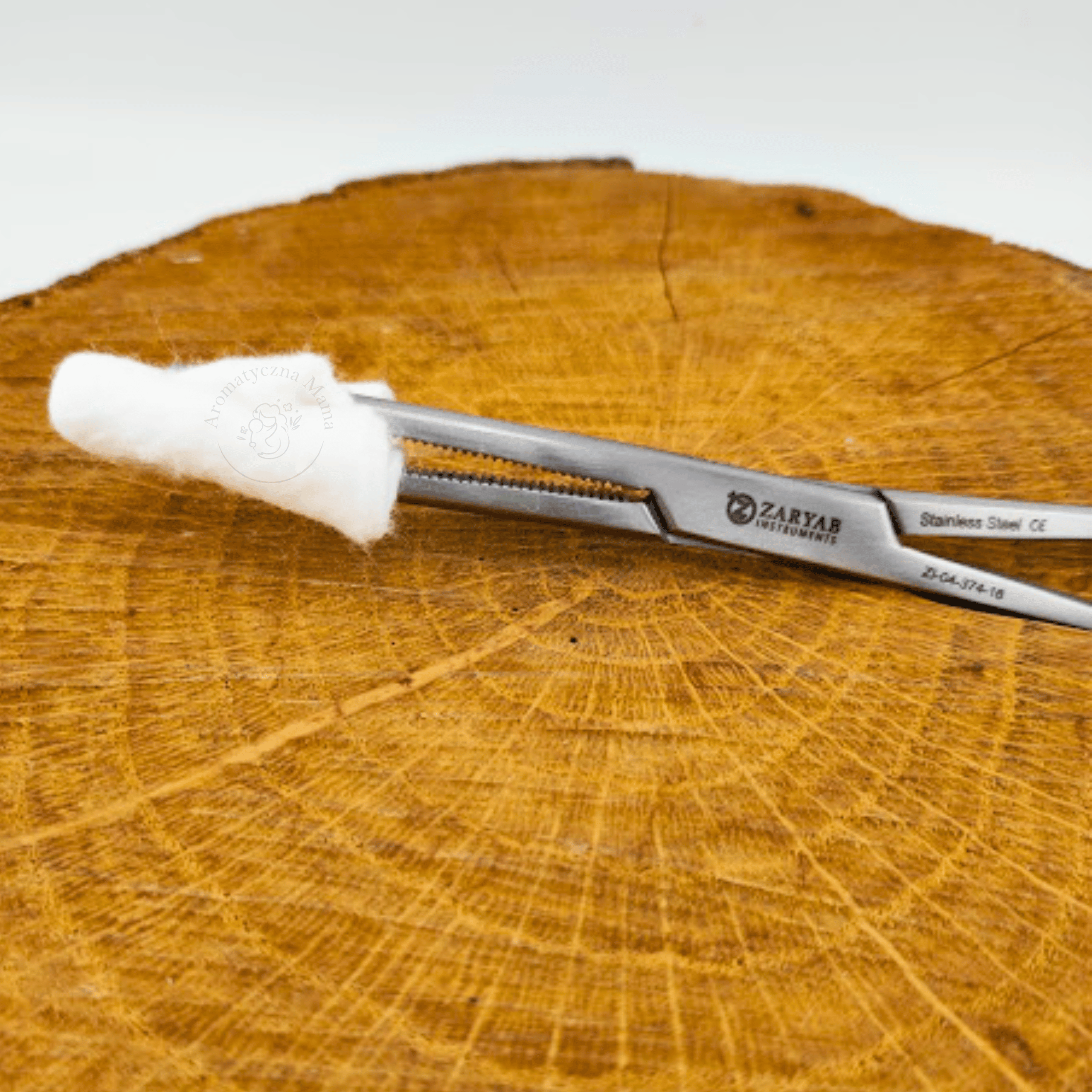 Kontrola narzędzi: Przed każdym użyciem sprawdź, czy szklane bańki nie mają pęknięć lub wyszczerbień, a mechanizm zatrzaskowy kleszczyków działa prawidłowo i pewnie trzyma wacik.