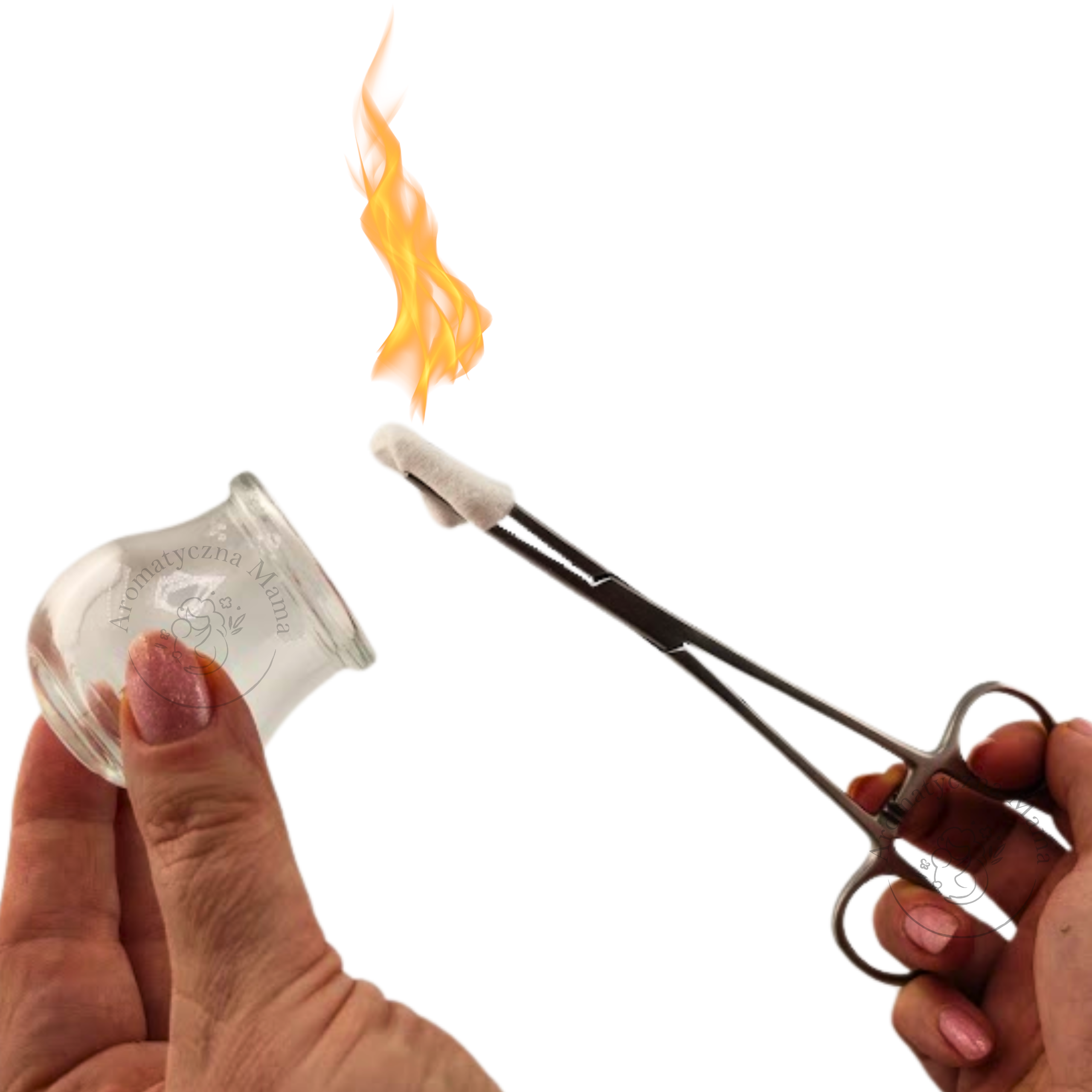 Polecam kleszczyki zaciskowe- proste. Wykonane ze stali nierdzewnej, solidne, dobrze się zaciskają, mają karbowane wnętrz zaciskowe. Pozwalają w bezpieczny sposób zacisnąć wacik nasączony alkoholem i precyzyjnie, bez obawy na wypadniecie płonącego elementu, stawiać bańki szklane.