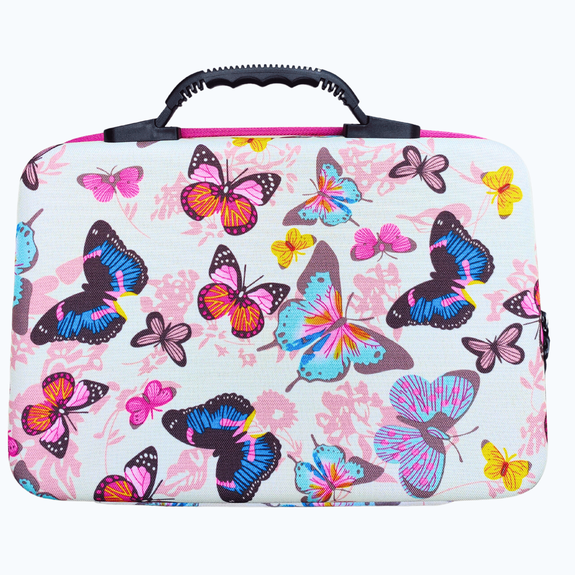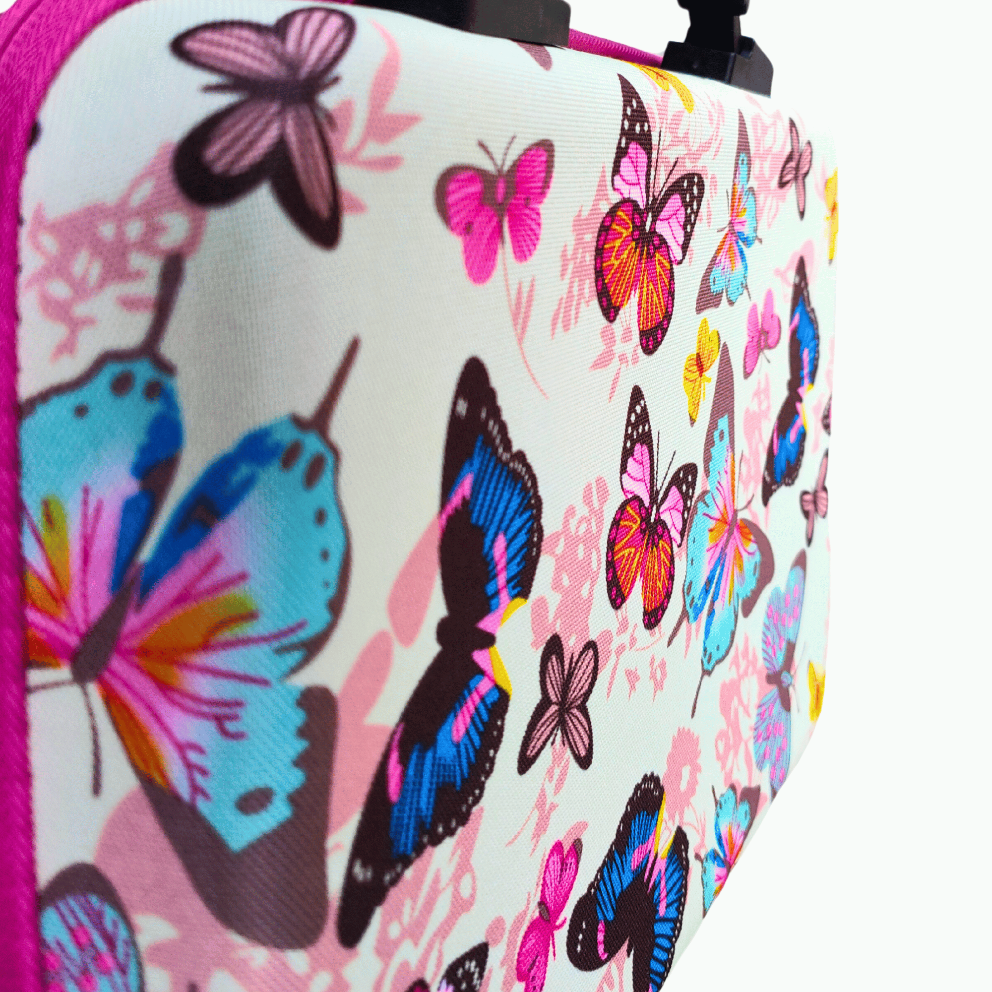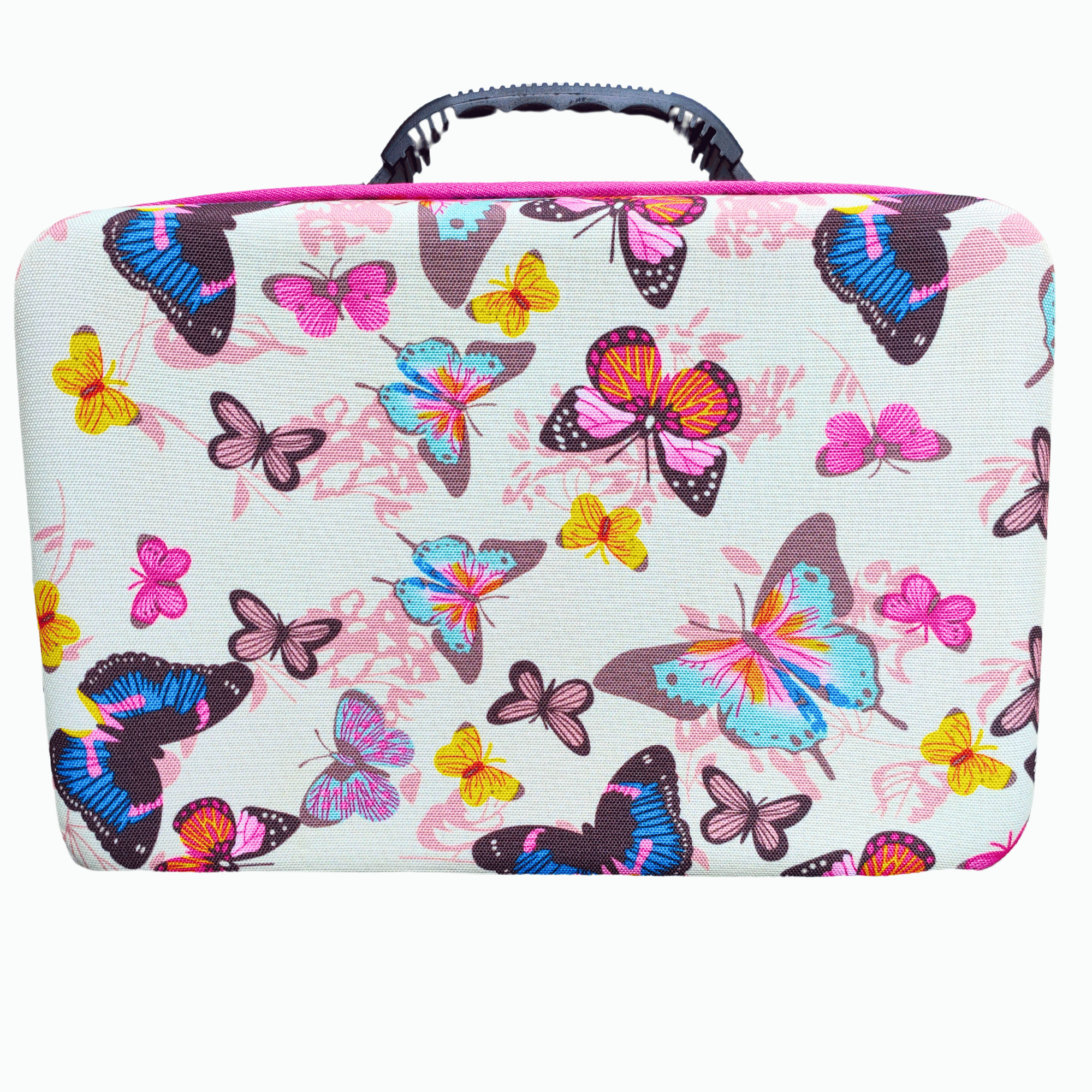Walizka etui na bańki szklane 20x 3-3,5 cm jasne motyle różowy pasek