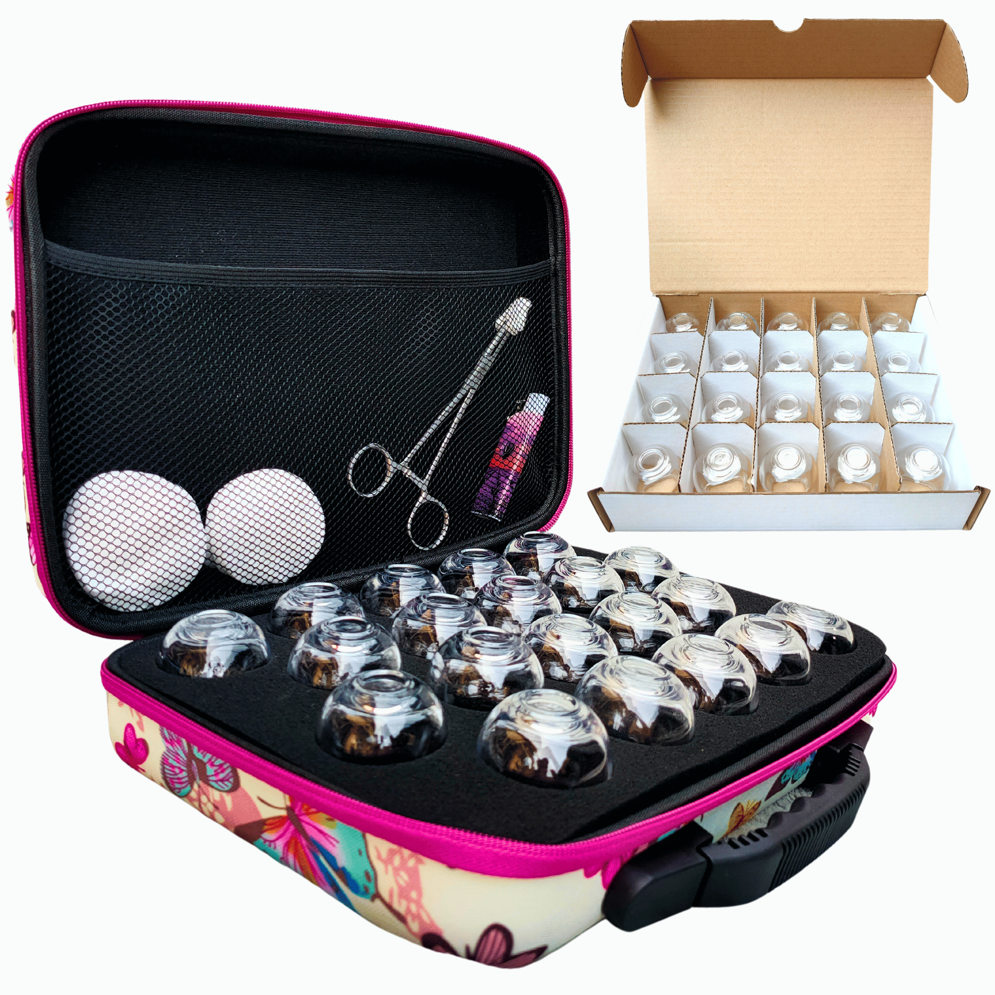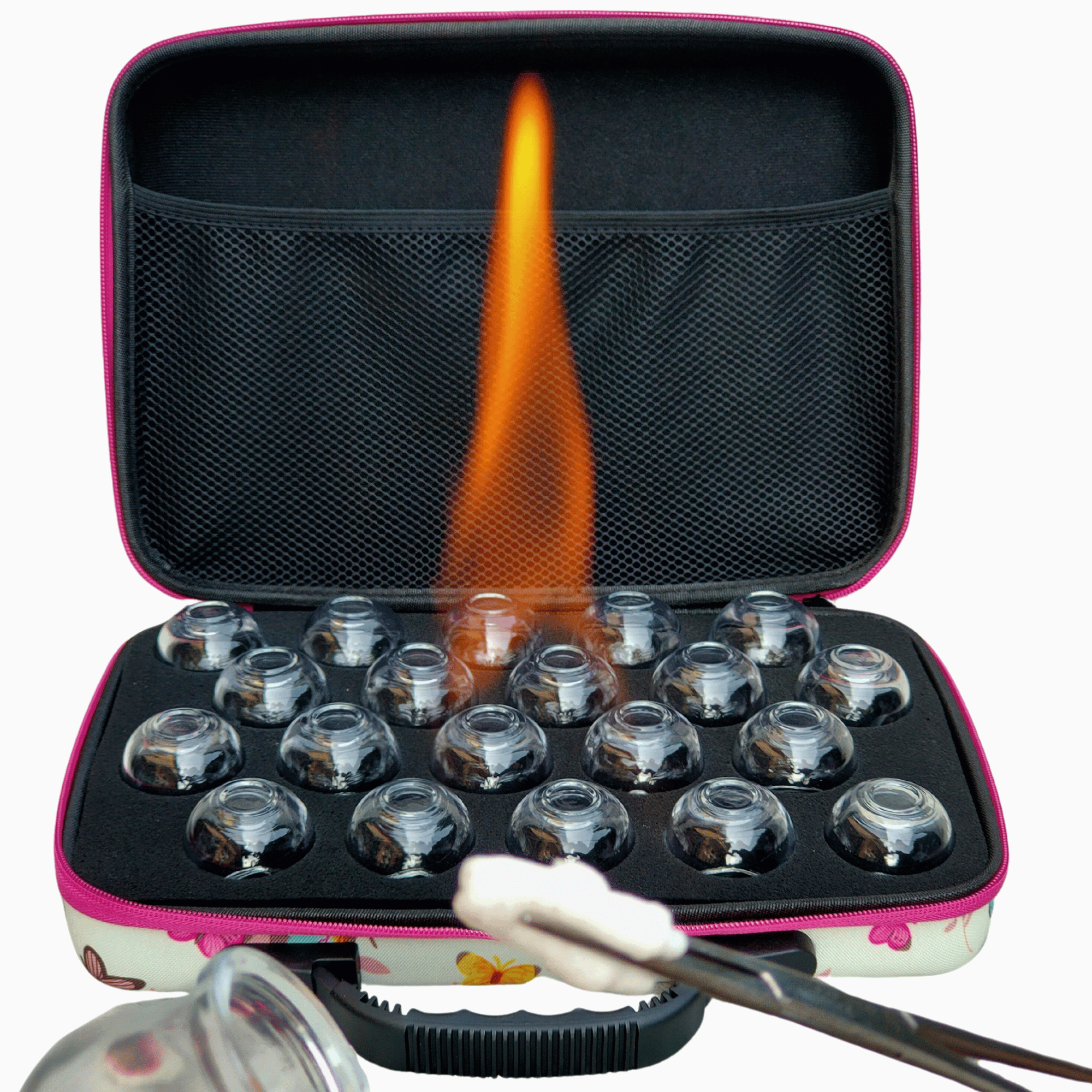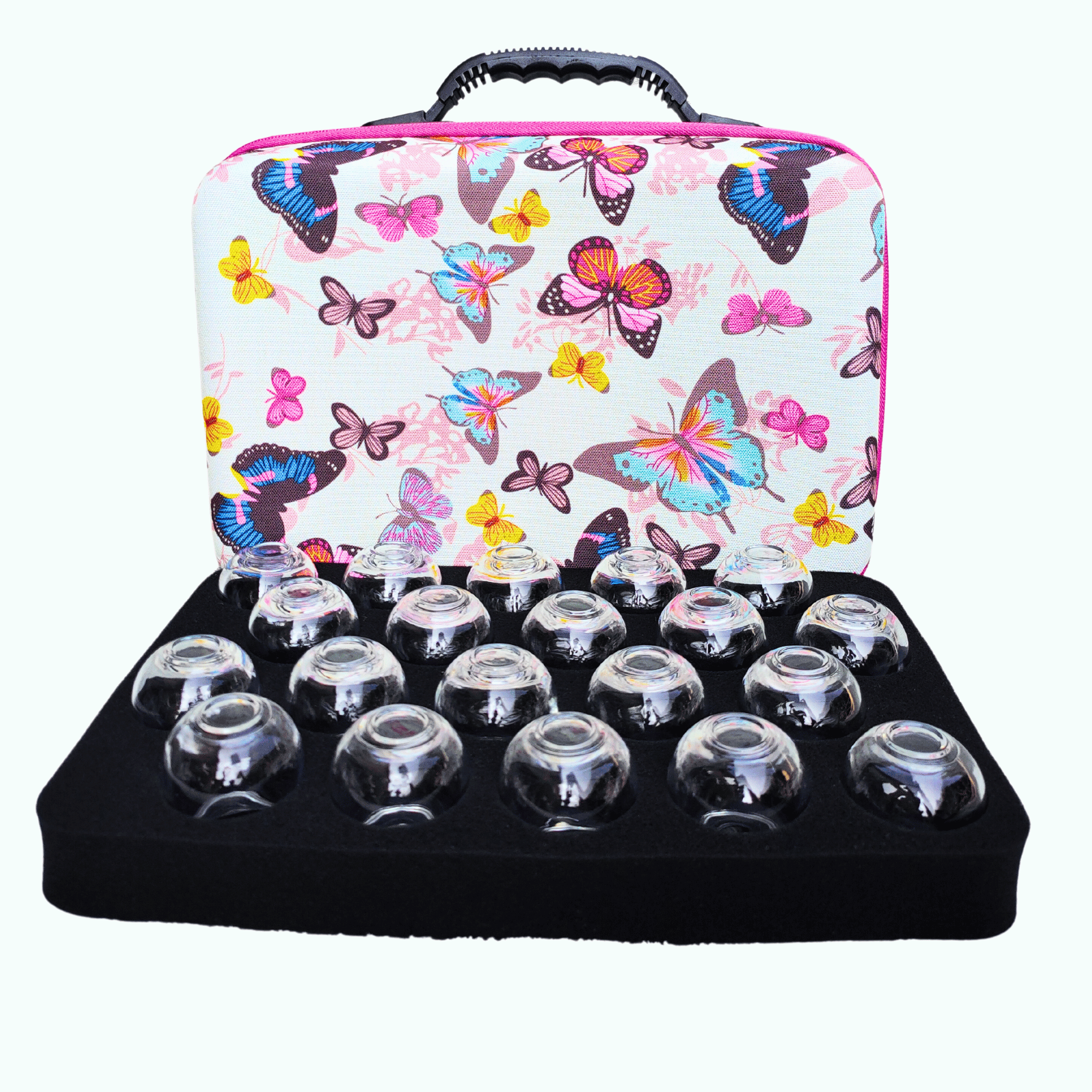 Bańki ogniowe szklane 20 szt. – zestaw w etui Jasne Motyle i szczypczyki
