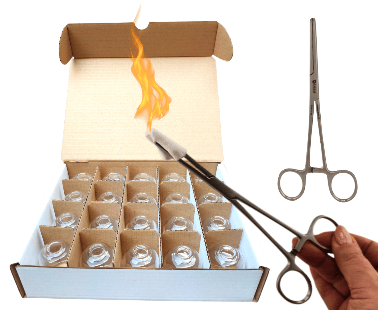 Bańki ogniowe szklane 20 szt. i kleszczyki zaciskowe zamiast kwacza