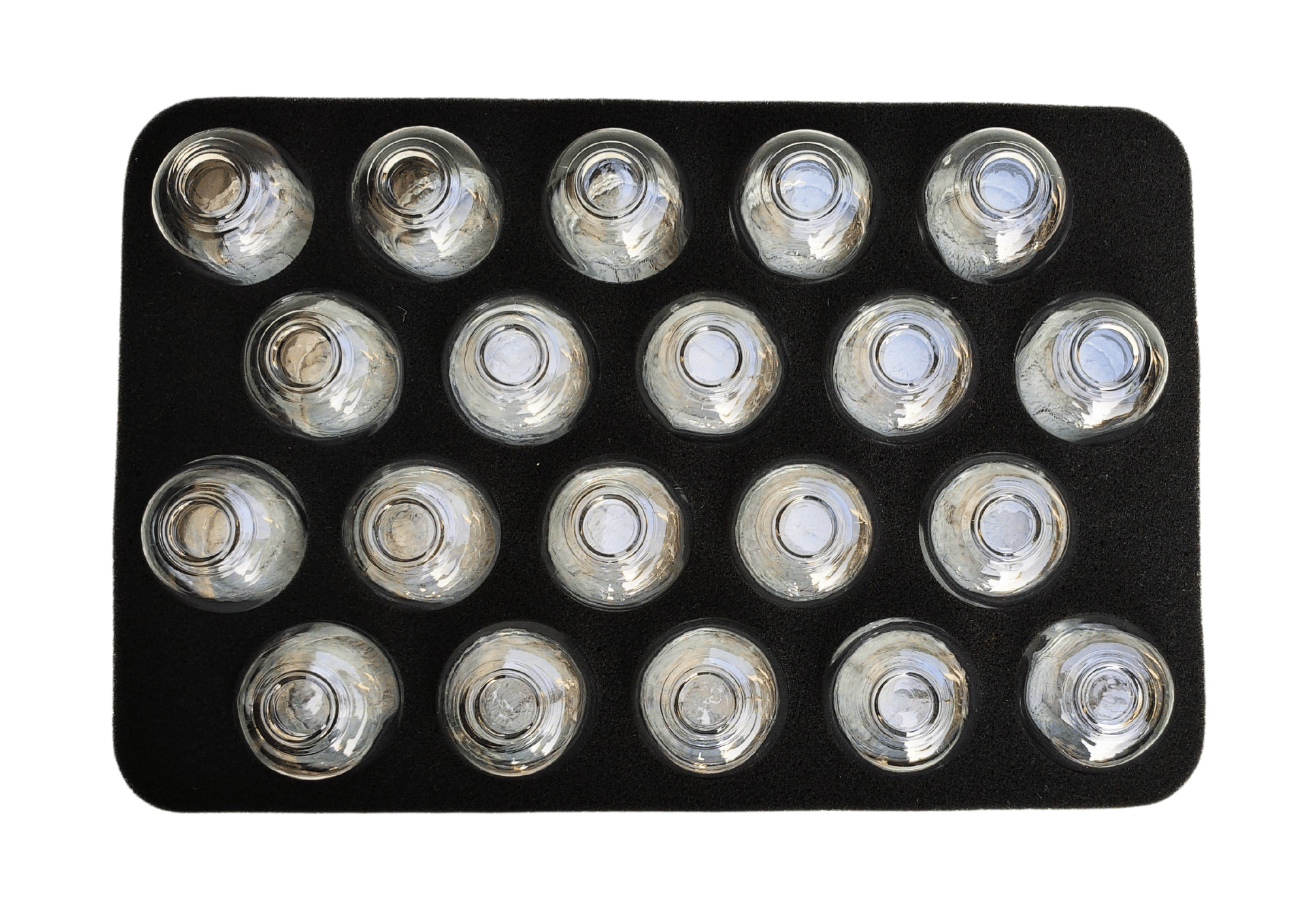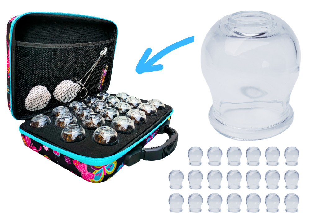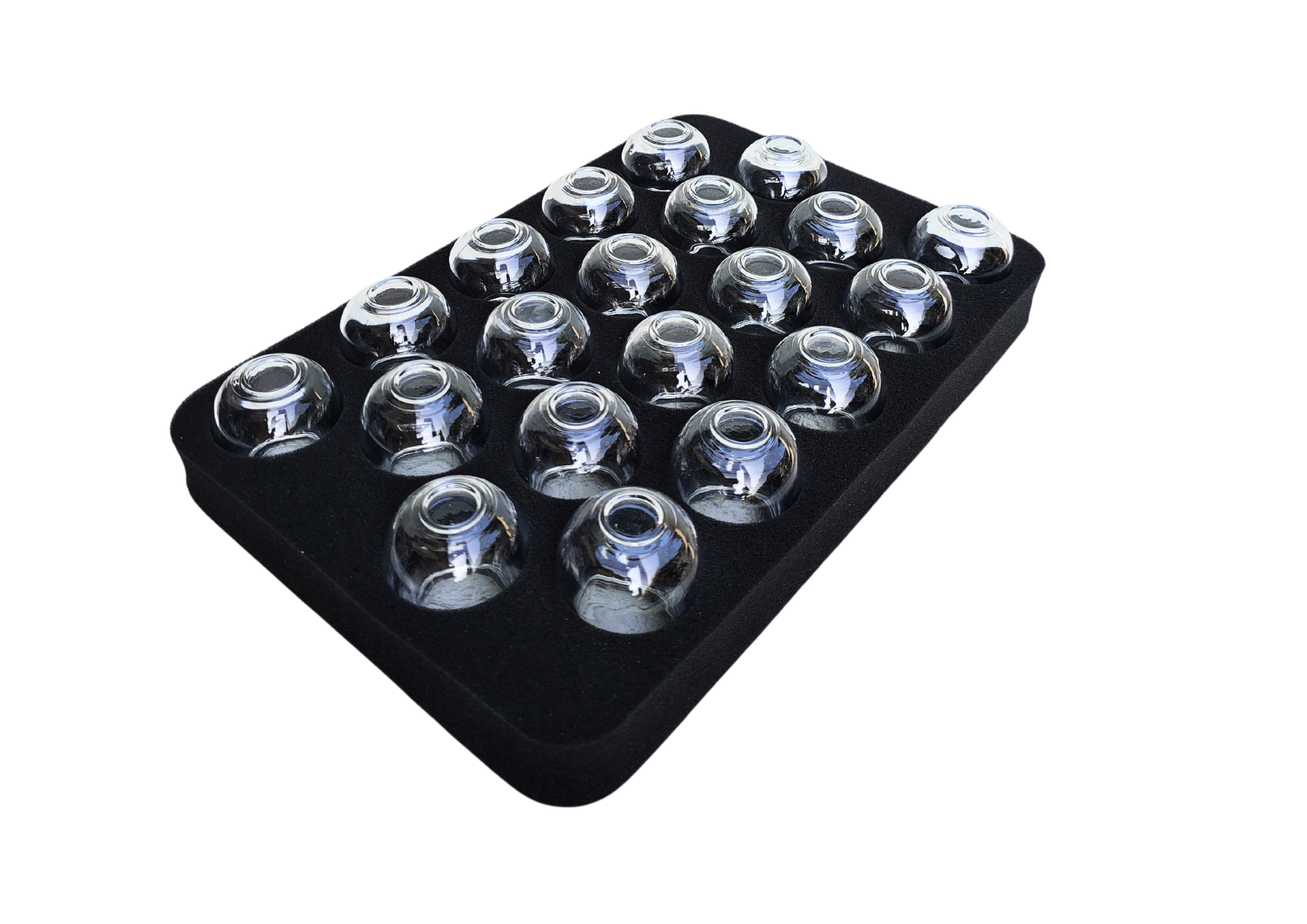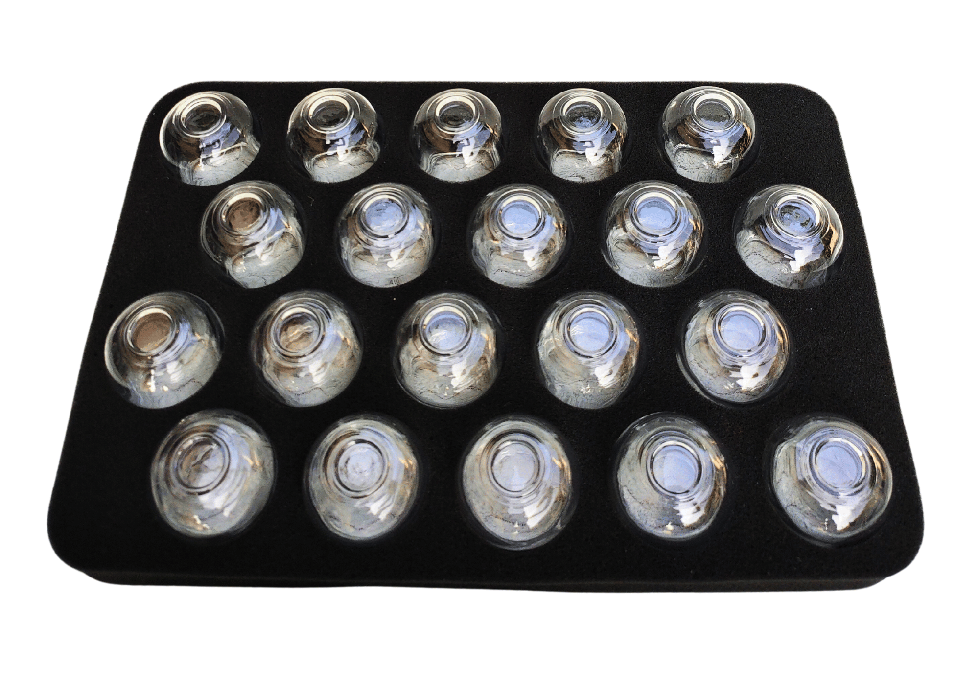 Organizer pomieści 20 sztuk baniek szklanych o średnicy od 3-3,5 cm, czyli tych klasycznych baniek lekarskich oraz baniek szklanych na pompkę.