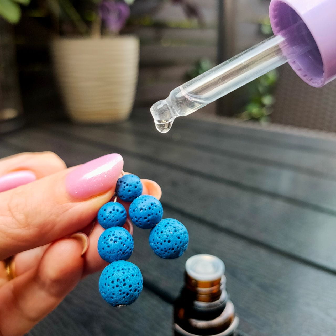 Możesz to zrobić bezpośrednio z buteleczki - 1-3 kropli rozetrzyj na powierzchni kul wykonanych z kamienia lawowego. Możesz użyć do tego poręcznej pipetki.