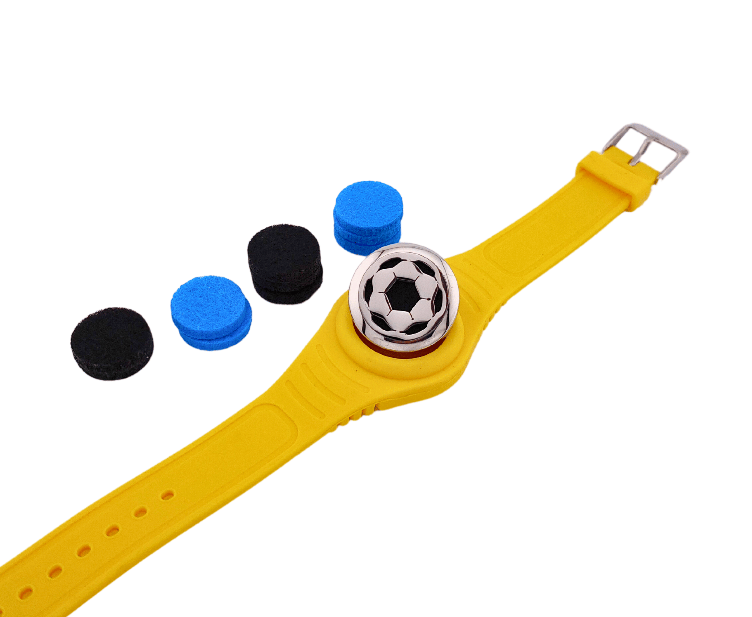 Opaska na filc dla dziecka na olejki eteryczne model PIŁKA - bransoletka silikonowa zapinana na dziurki jak opaska zegarka.