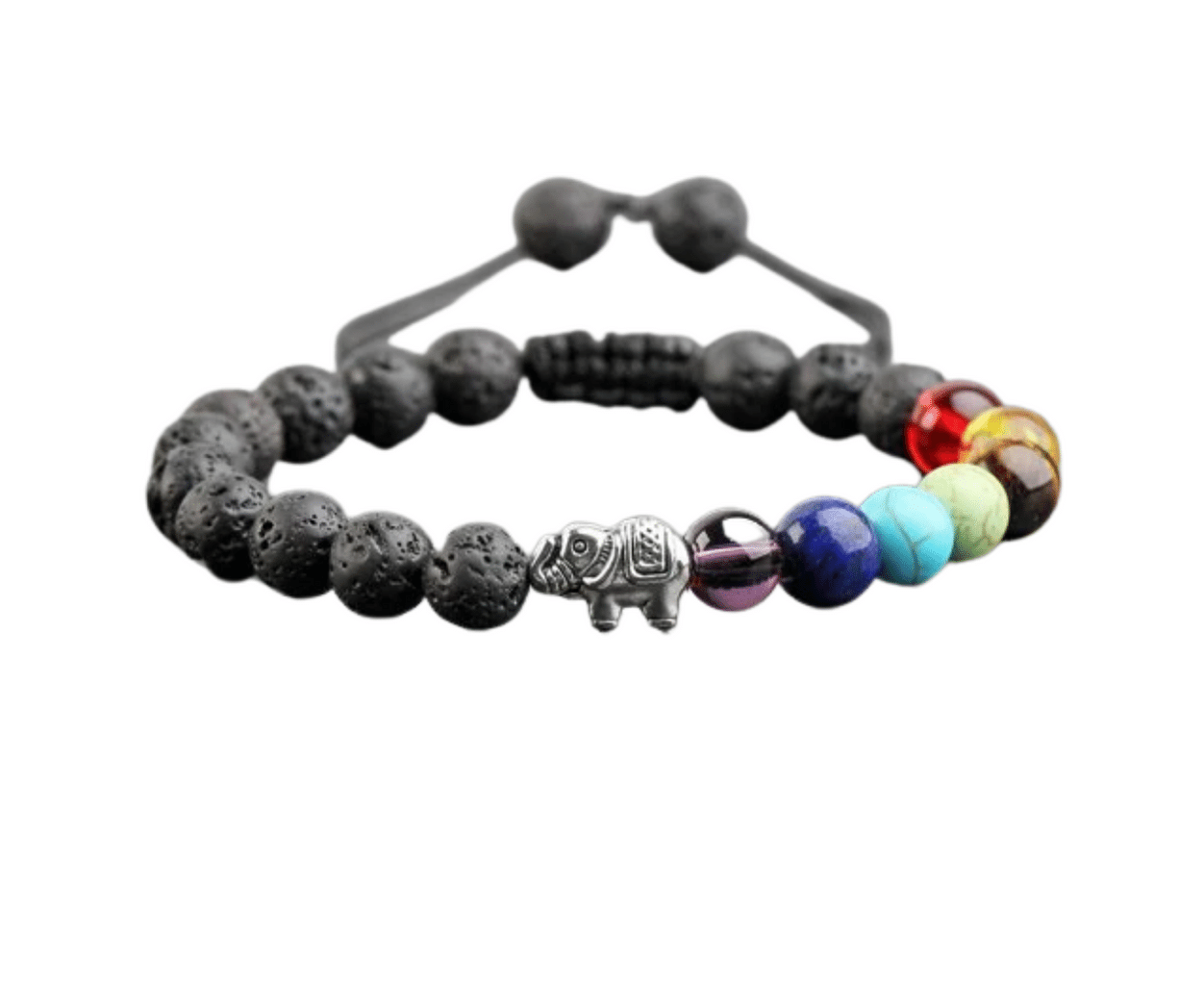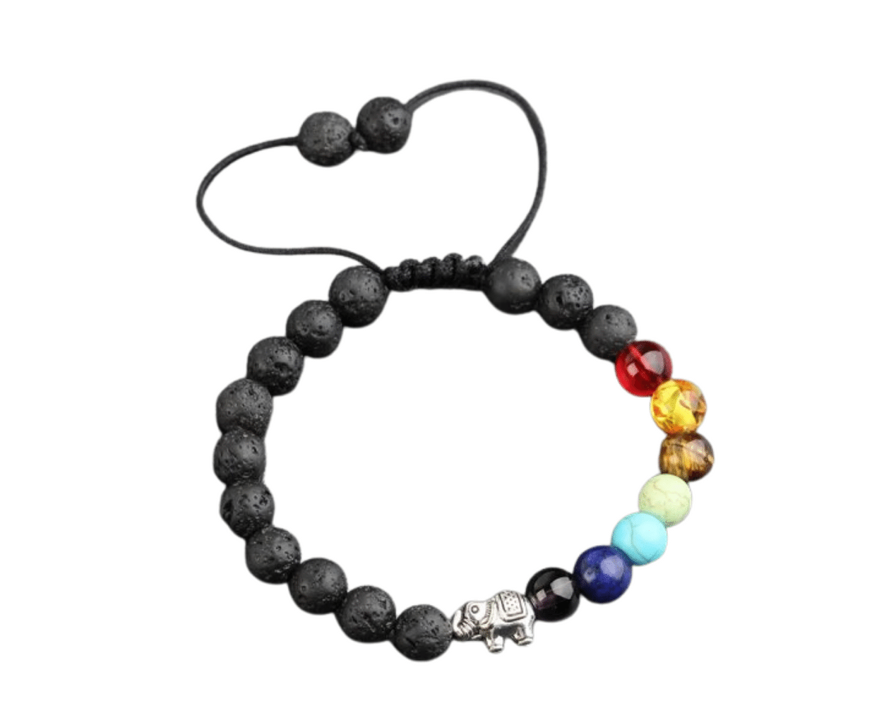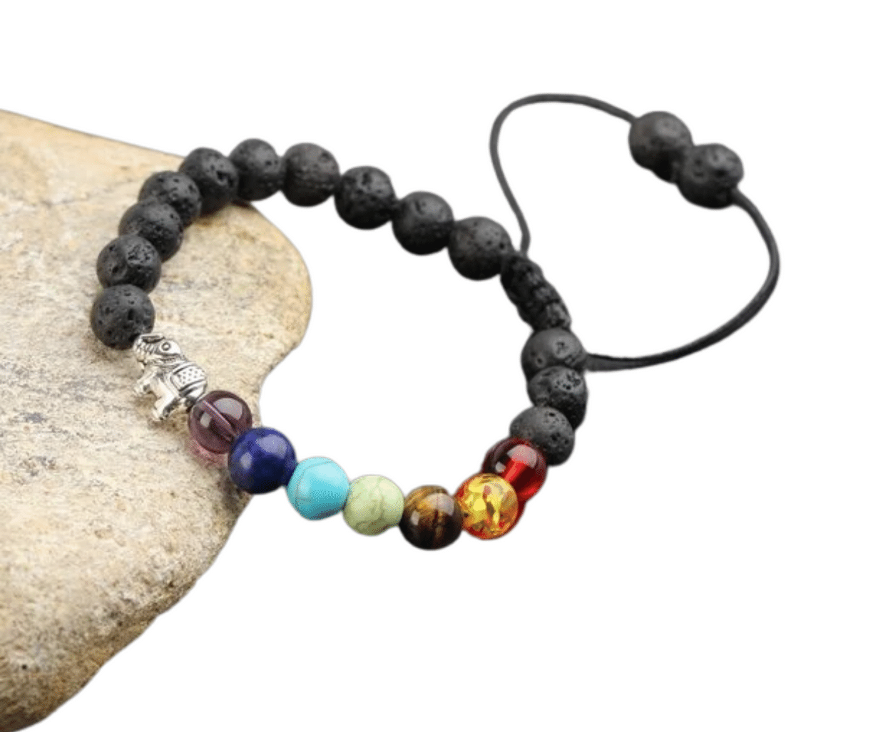 Bransoletka regulowana kamień lawowy + słoń i kolory 7 czakr