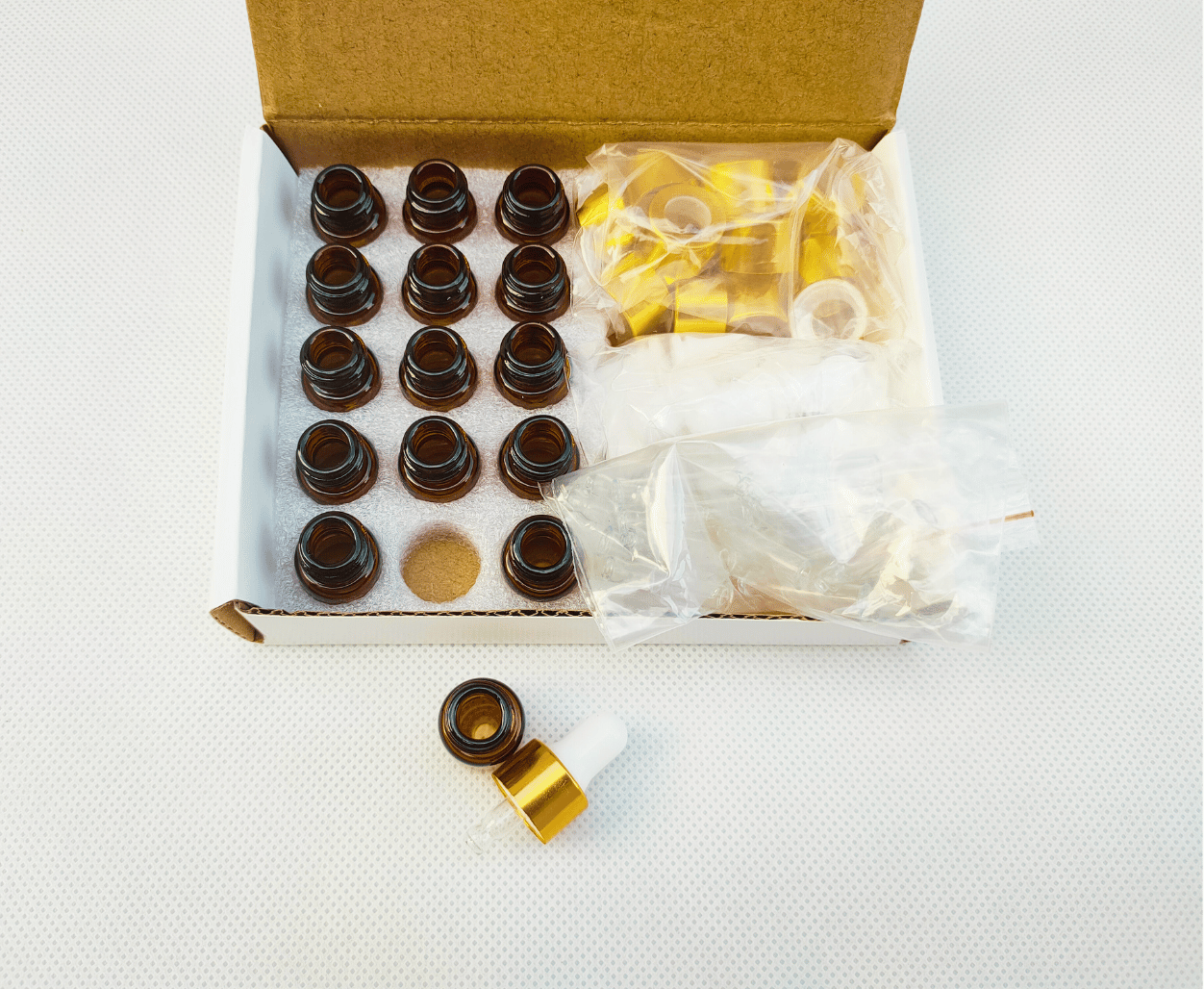 Butelka szklana brązowa z pipetą złotą i zakraplaczem 2ml