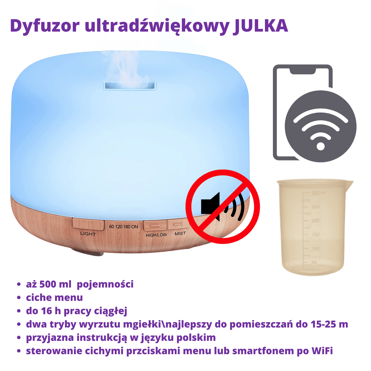 Duży dyfuzor ultradźwiękowy idealny do pomieszczeń do 25 m - model JULKA + gratis miarka na wodę