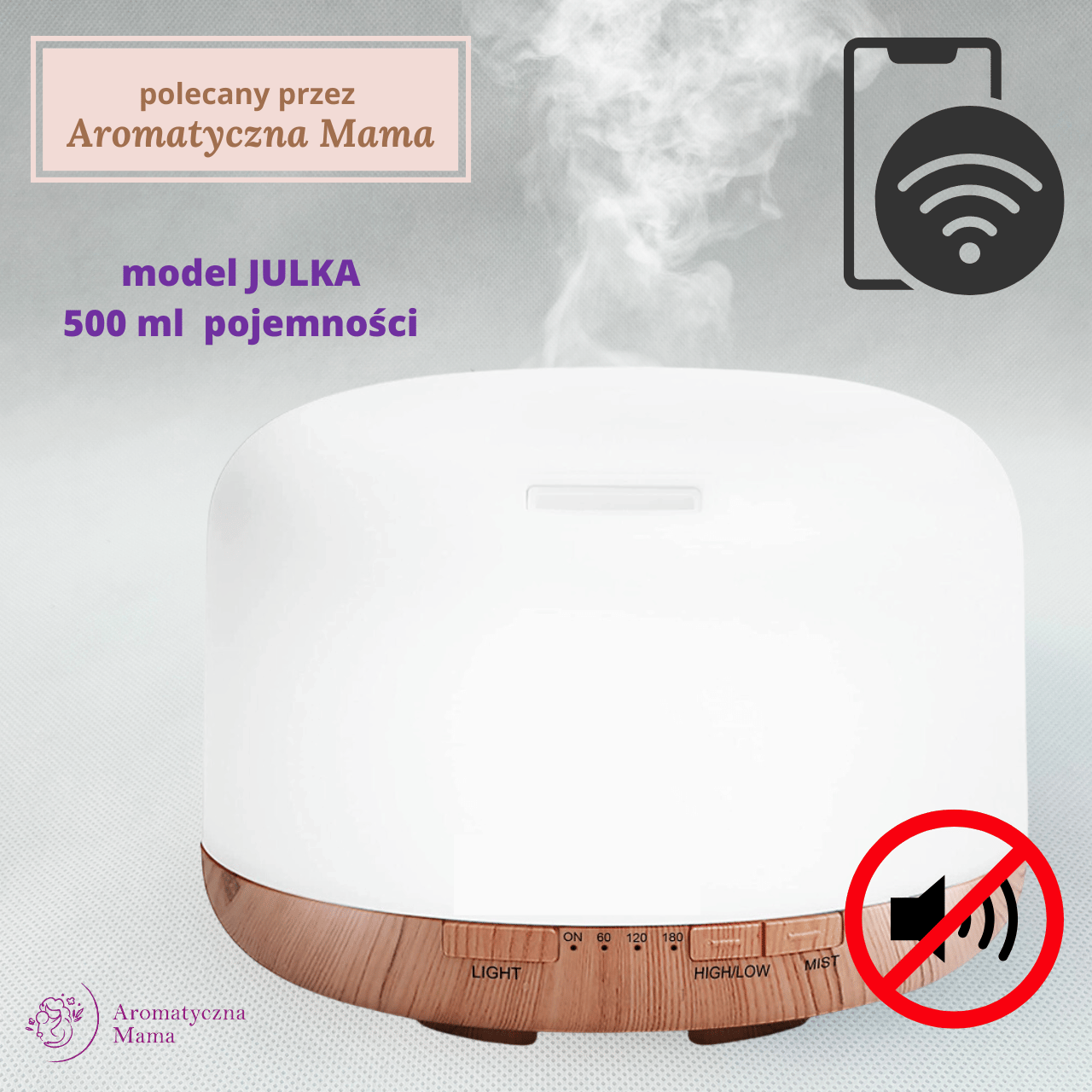 Dyfuzor do olejków eterycznych ultradźwiękowy duży 500ml WiFi Tuya | Aromatyczna Mama Julka