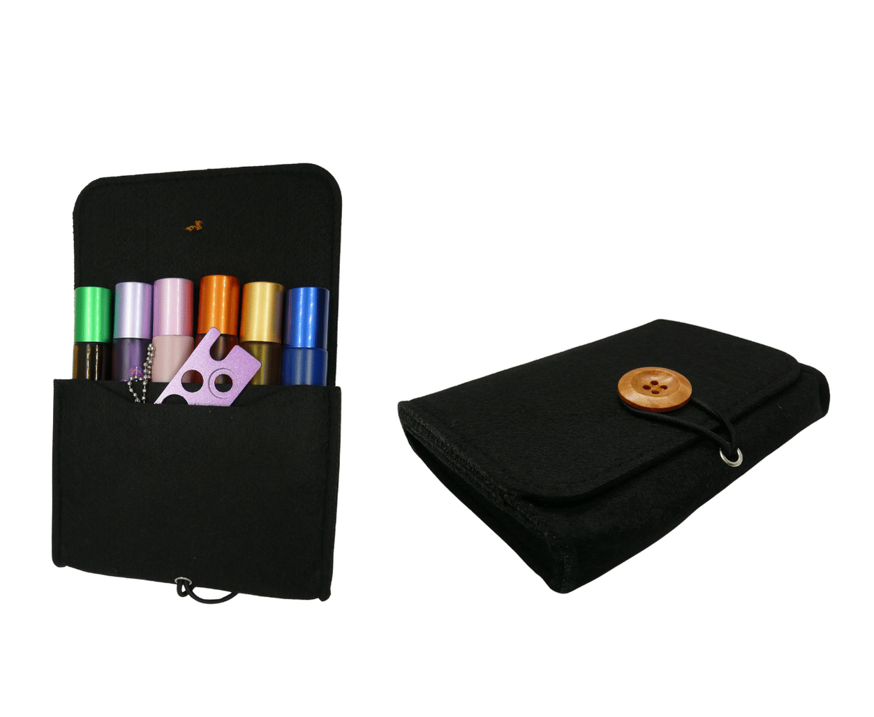 Filcowe etui kosmetyczka futerał na 6 buteleczek 10 ml typu rollon - kolor czarny