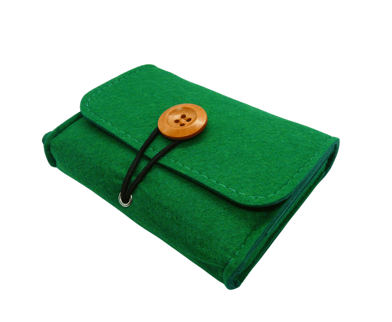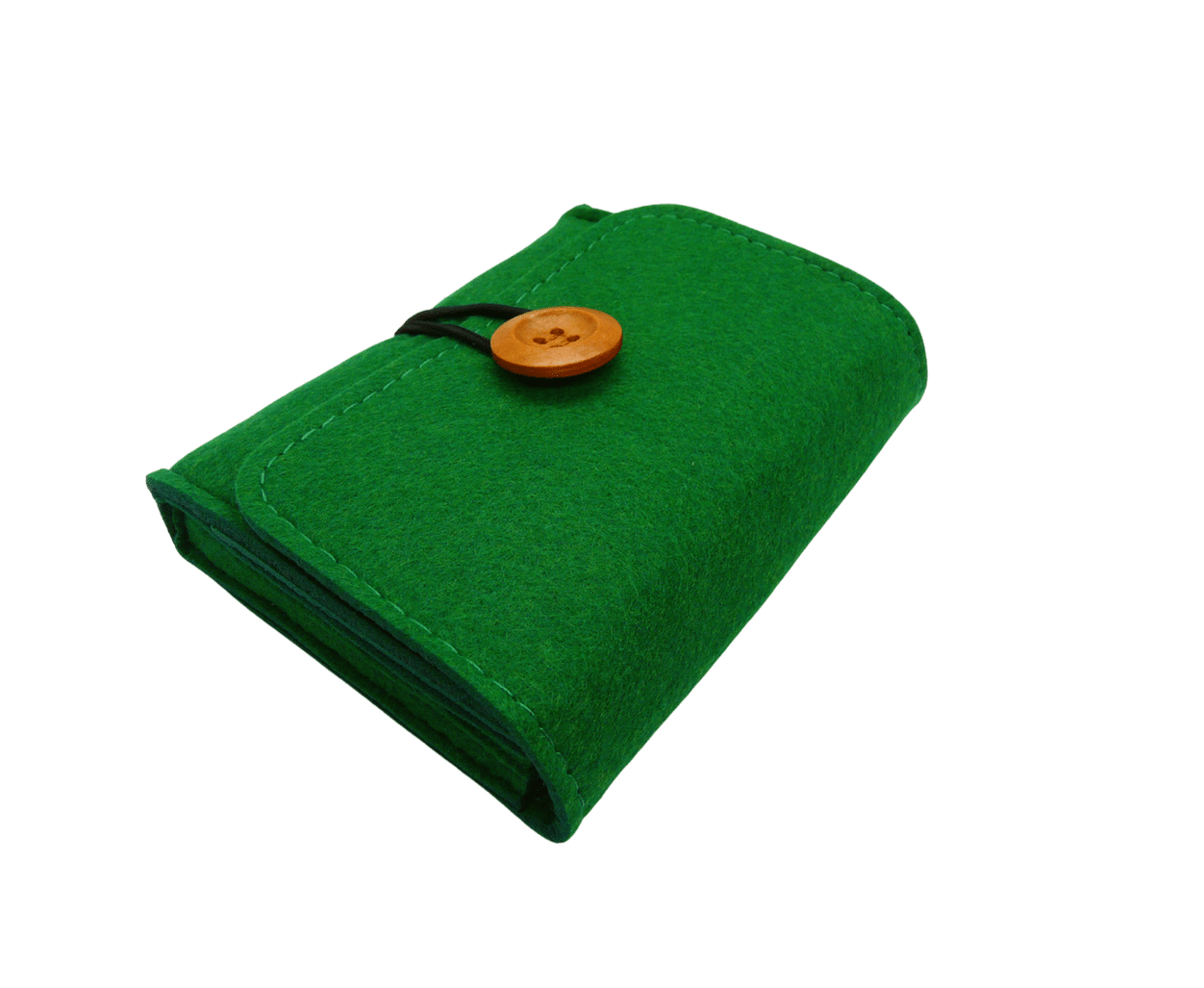 Etui wykonane jest z grubego, przyjemnego w dotyku filcu w formie takiego portfela zapinanego na pętelkę z guzikiem. Piękne, żywe kolory.