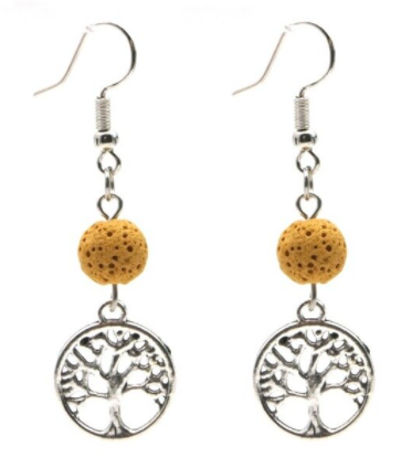 Kolczyki drzewo życia z kamieniem lawowym żółty