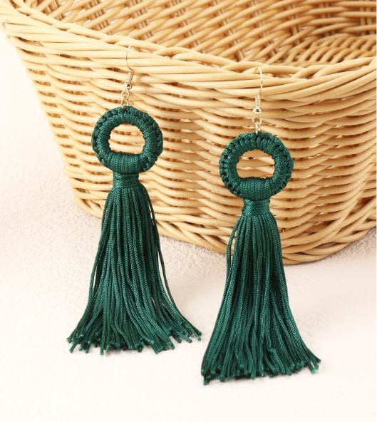 Kolczyki wiszące bigle frędzle zielone butelkowe