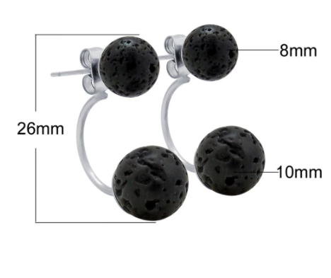 Niezwykle gustowne kolczyki wykonane ze stali nierdzewniej połączonej z dwoma kulami z kamienia lawowego.
