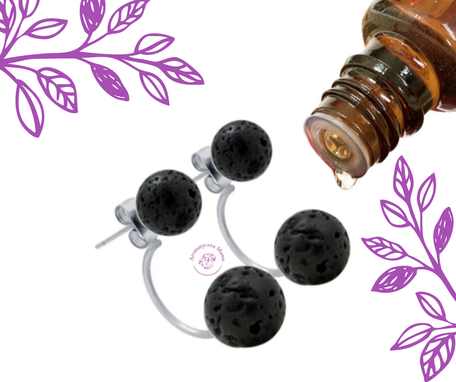Kolczyki wkrętki do aromaterapii 2 x kula kamień lawowy