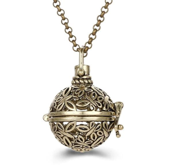Naszyjnik do aromaterapii zawieszka aromatyczna kula stare złoto