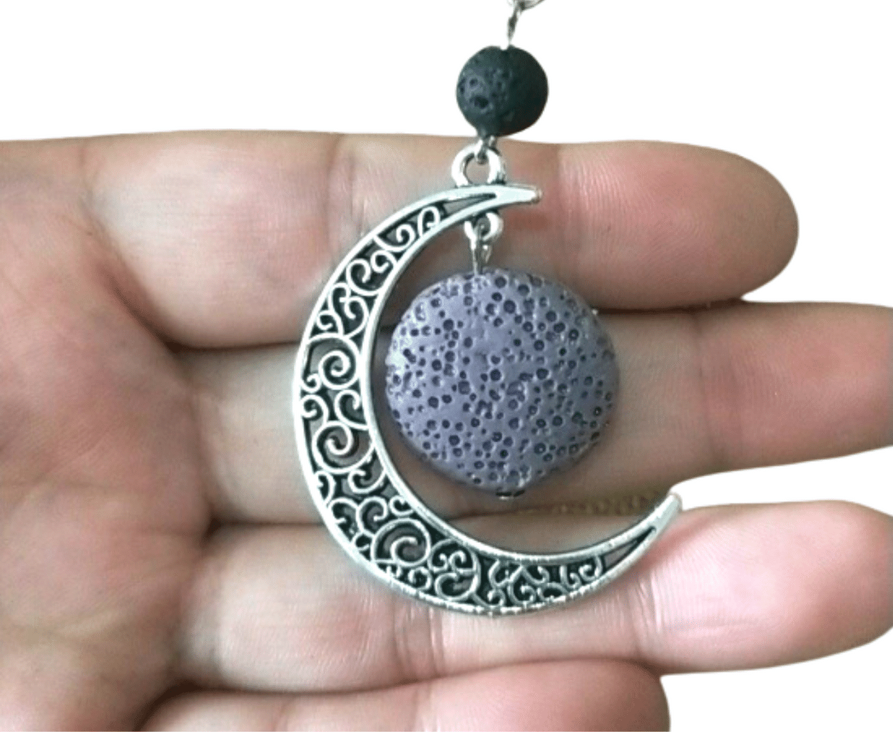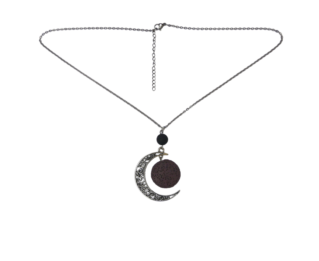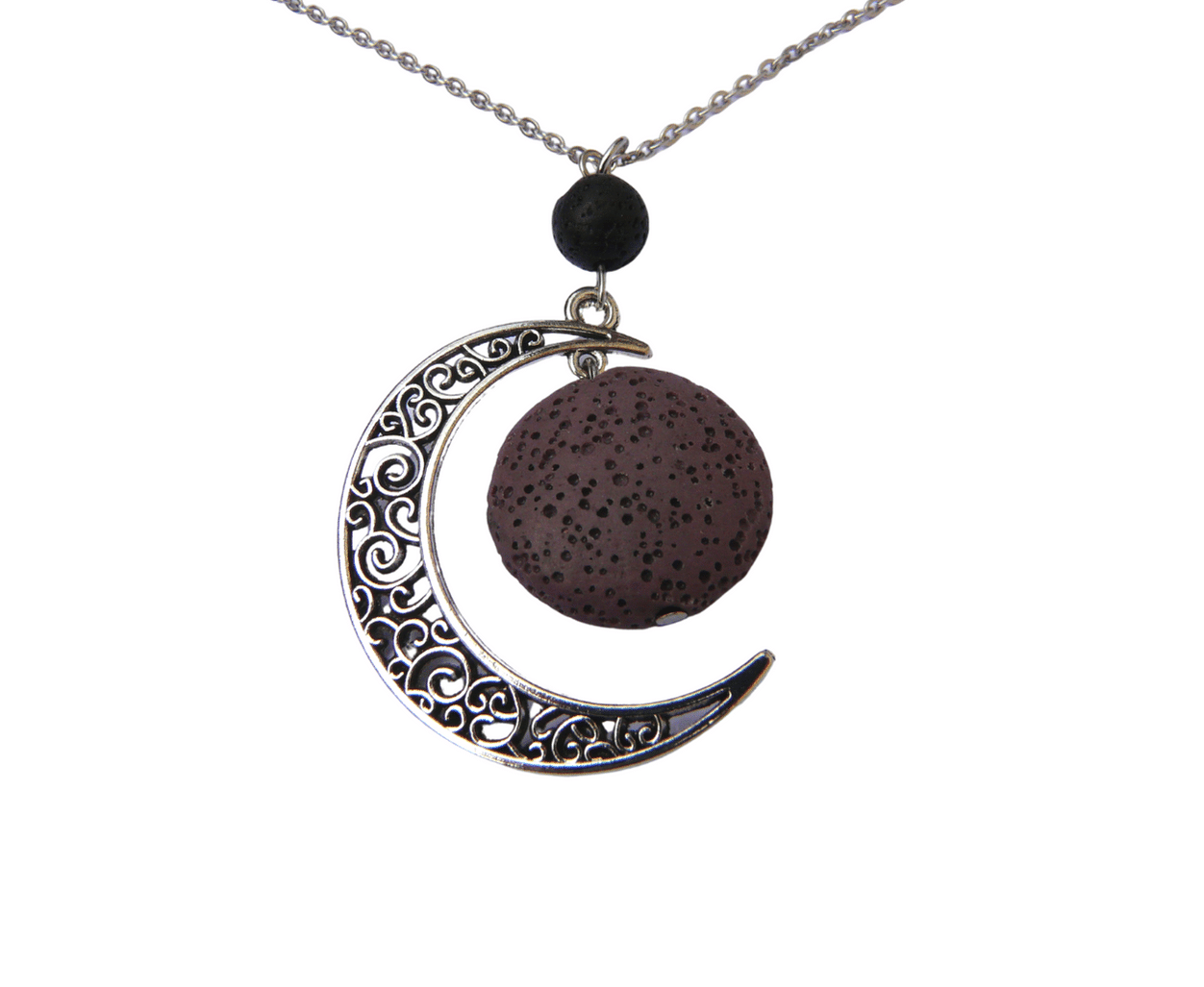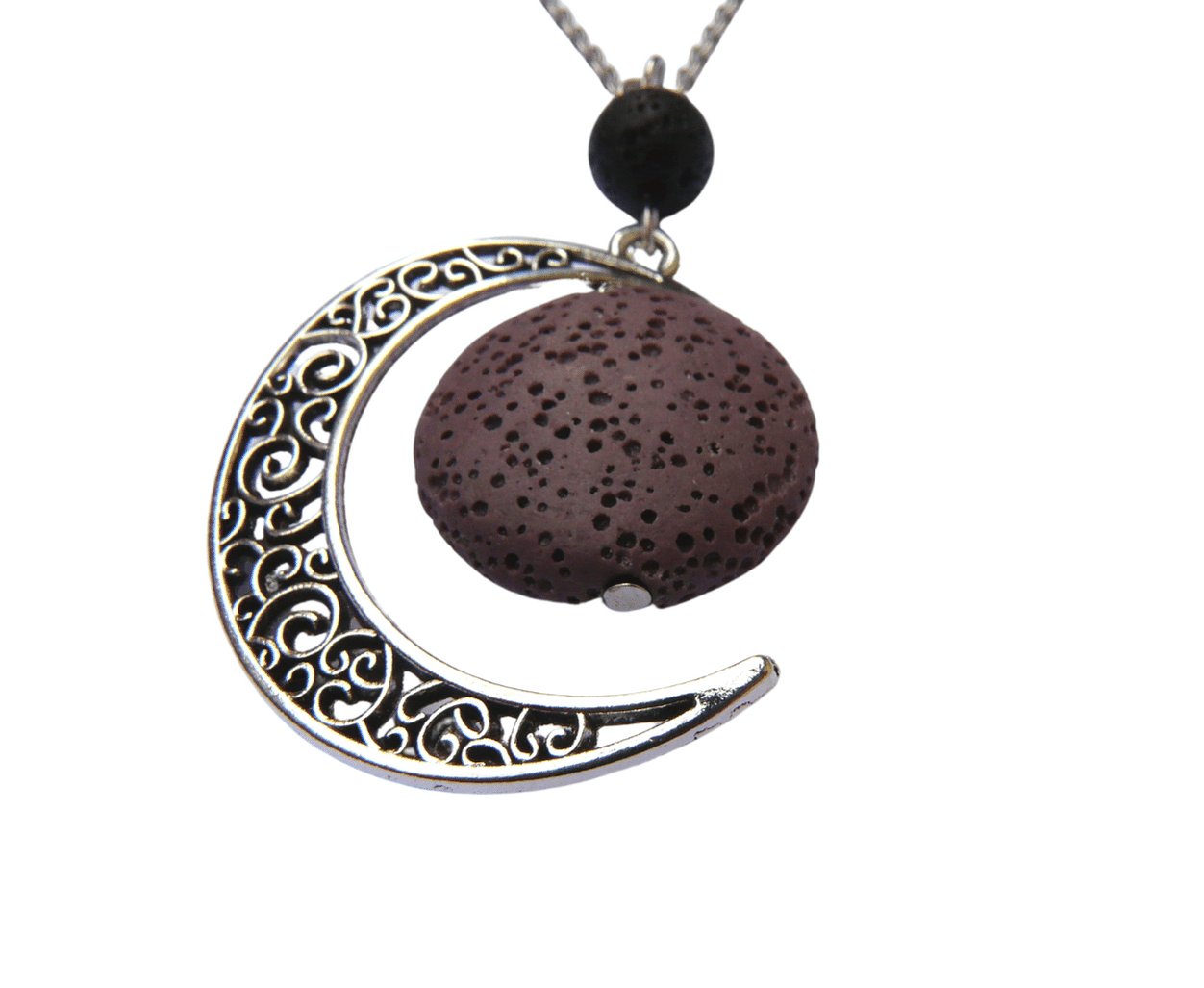 Naszyjnik aromaterapia- brązowy kamień lawowy srebny księżyc