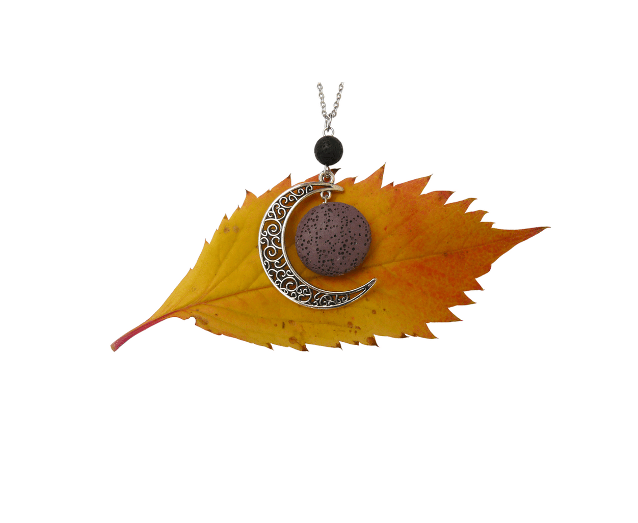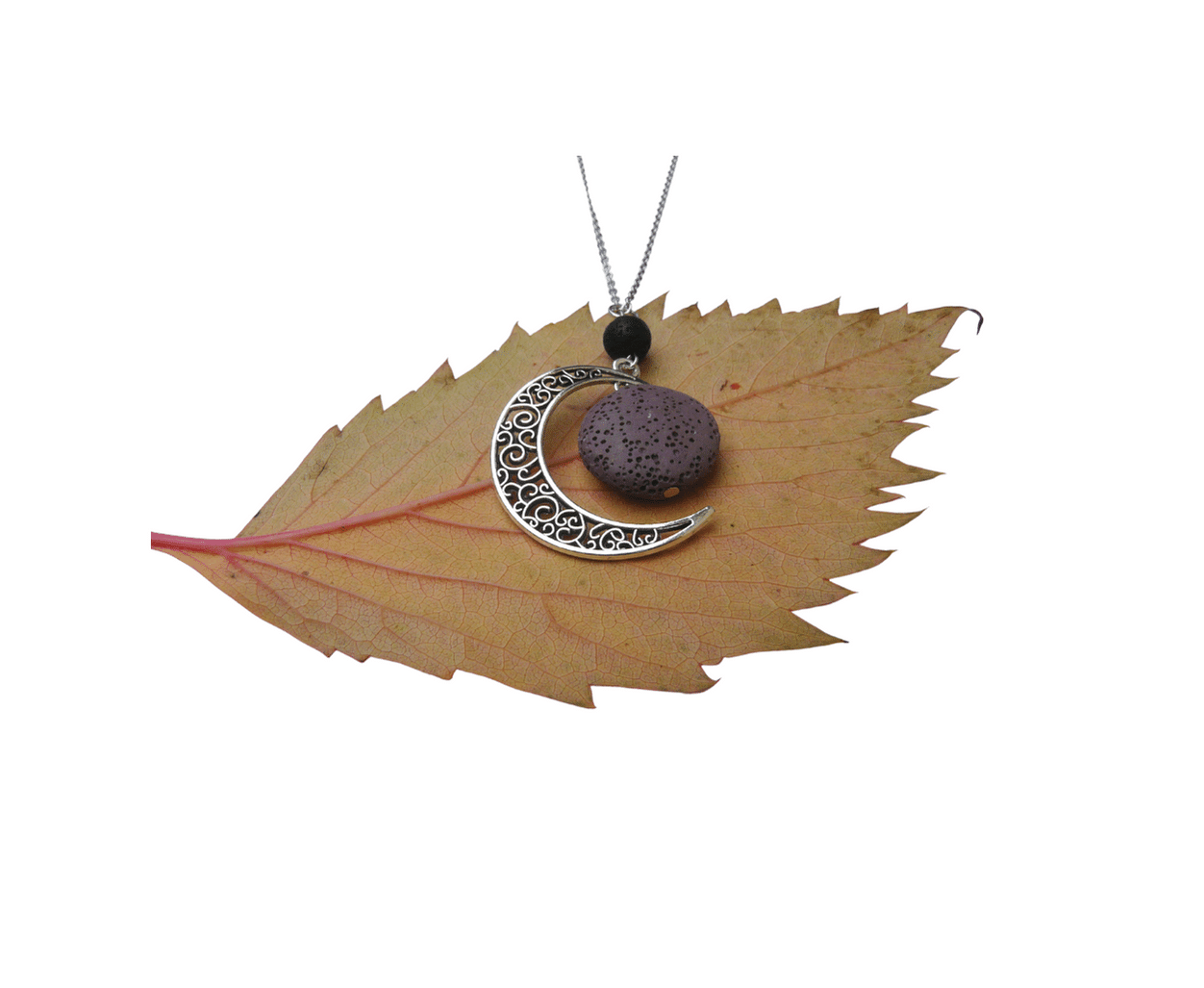 Delikatny, kobiecy naszyjnik do aromaterapii. Łańcuszek wykonany ze stali nierdzewnej, a zawieszka to duży kamień lawowy w towarzystwie księżyca. Dodatkowa czarna kulka pozwala na zastosowanie dwóch różnych olejków eterycznych i skomponowanie własnej, unikalnej kompozycji.