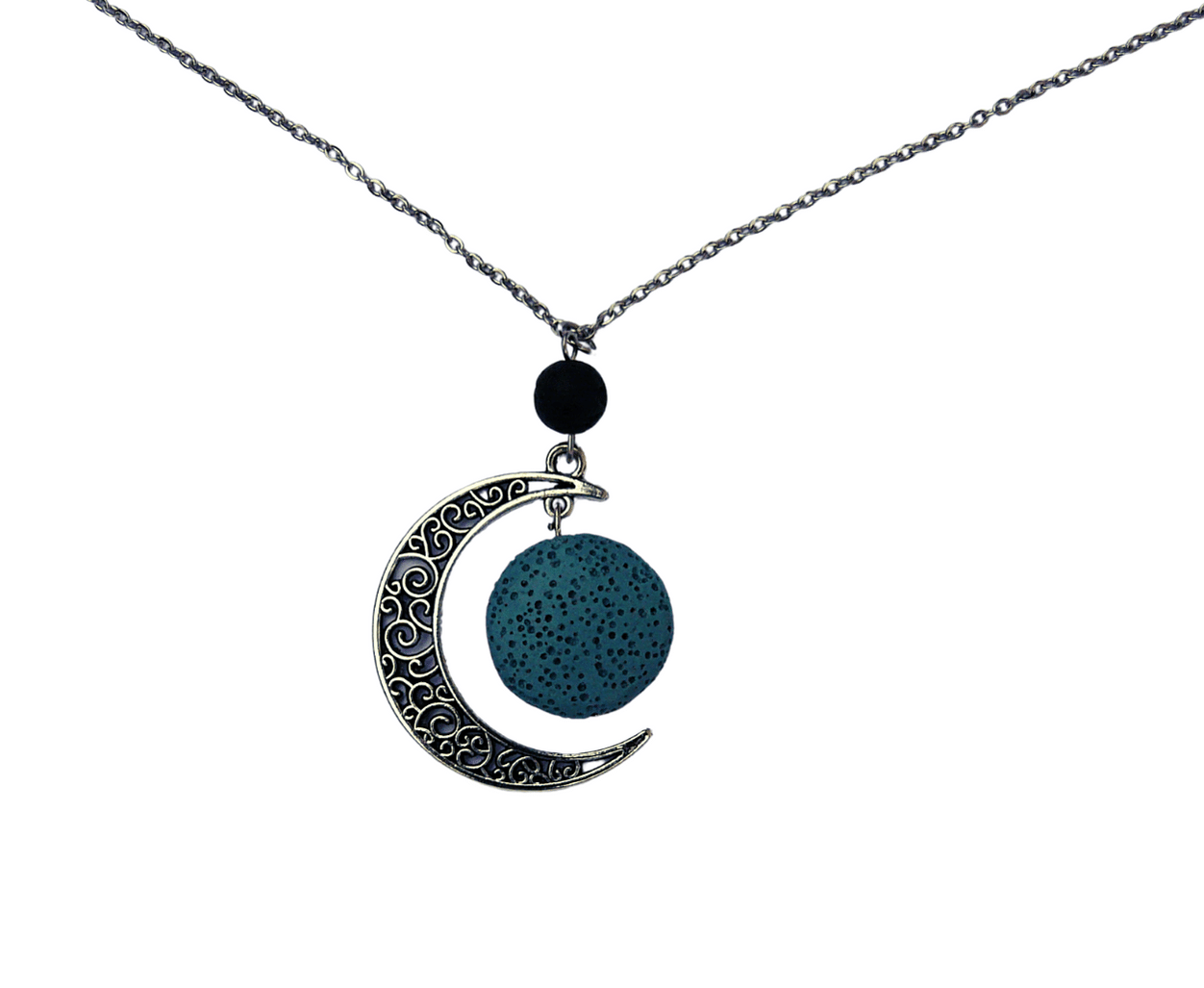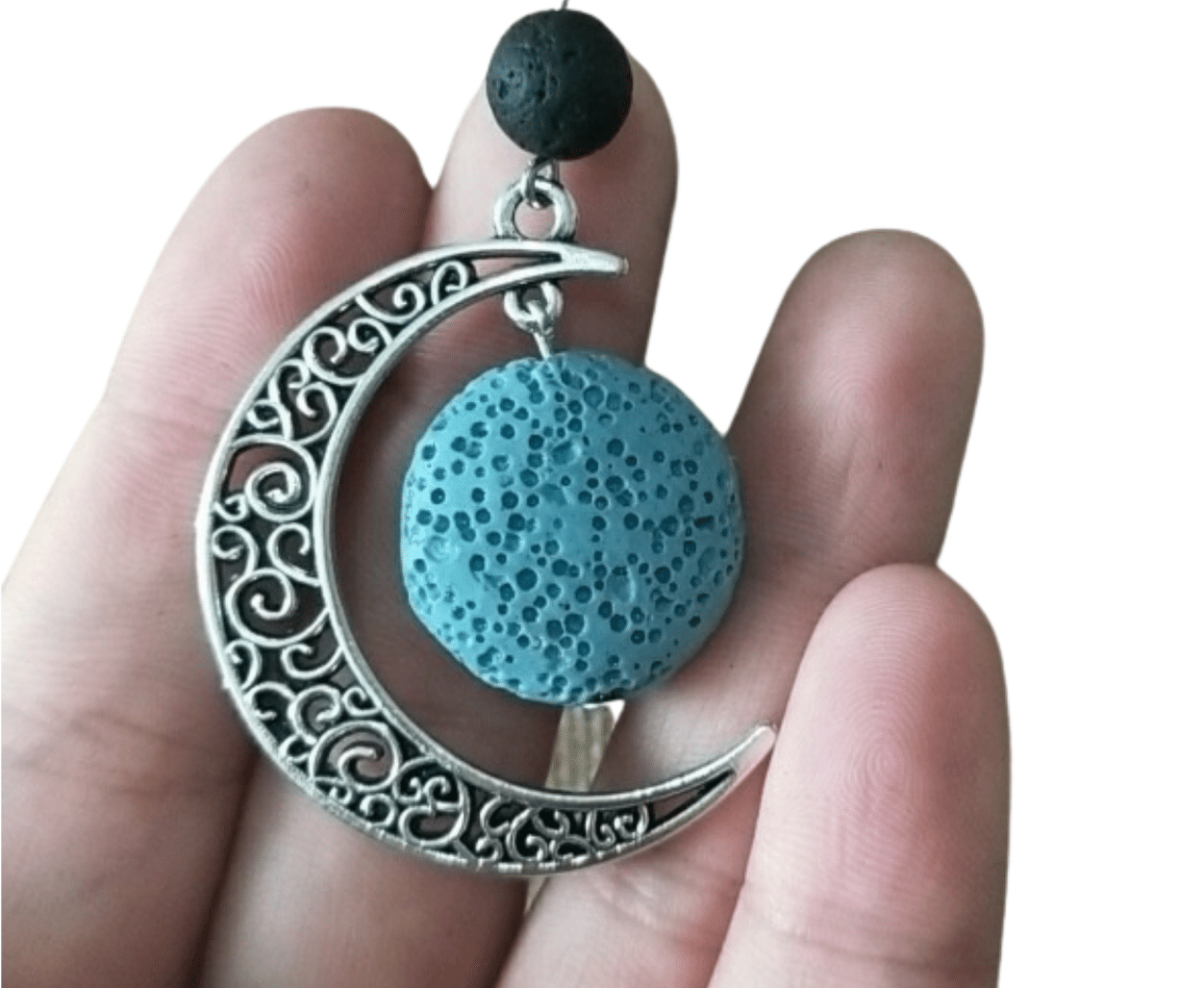 Naszyjnik kamień lawowy księżyc - turkus
