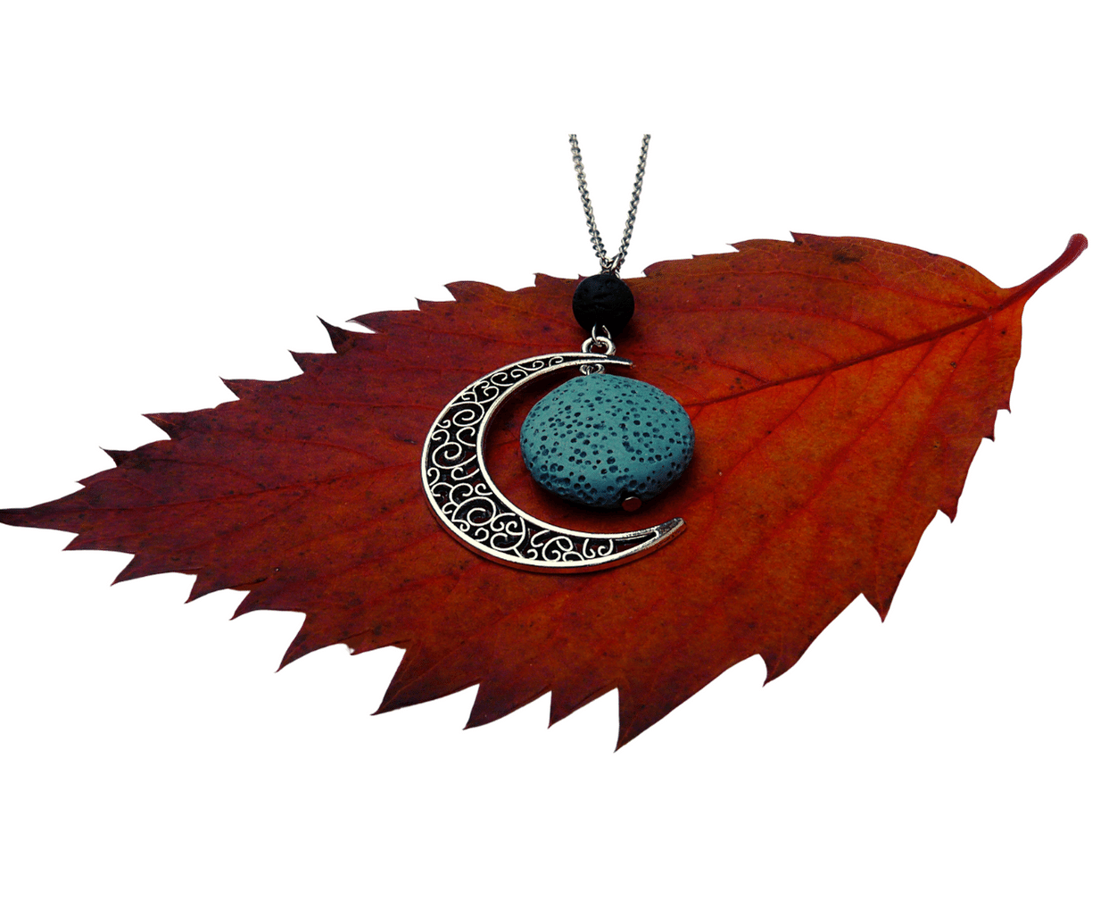 Naszyjnik aromaterapia- kurkusowy kamień lawowy księżyc