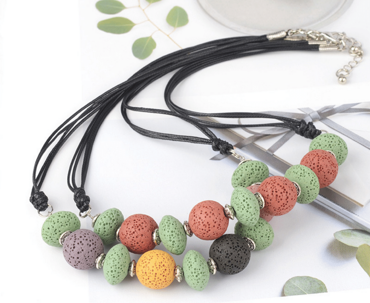 Piękny aromatyczny naszyjnik z dziewięcioma kamieniami lawowymi.