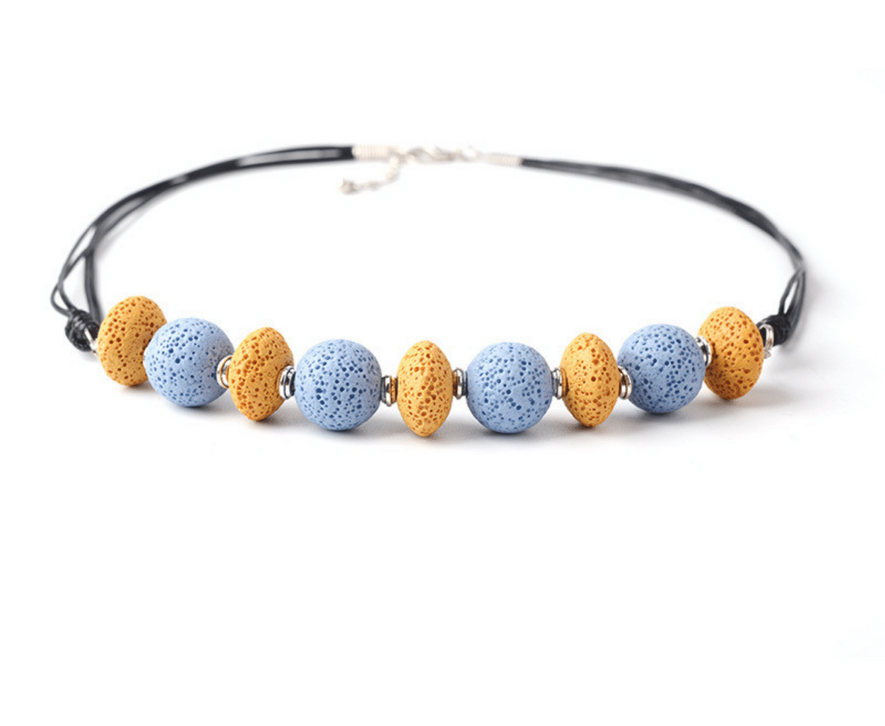Naszyjnik kamienie lawowe jak korale na regulowanym rzemyku - morze