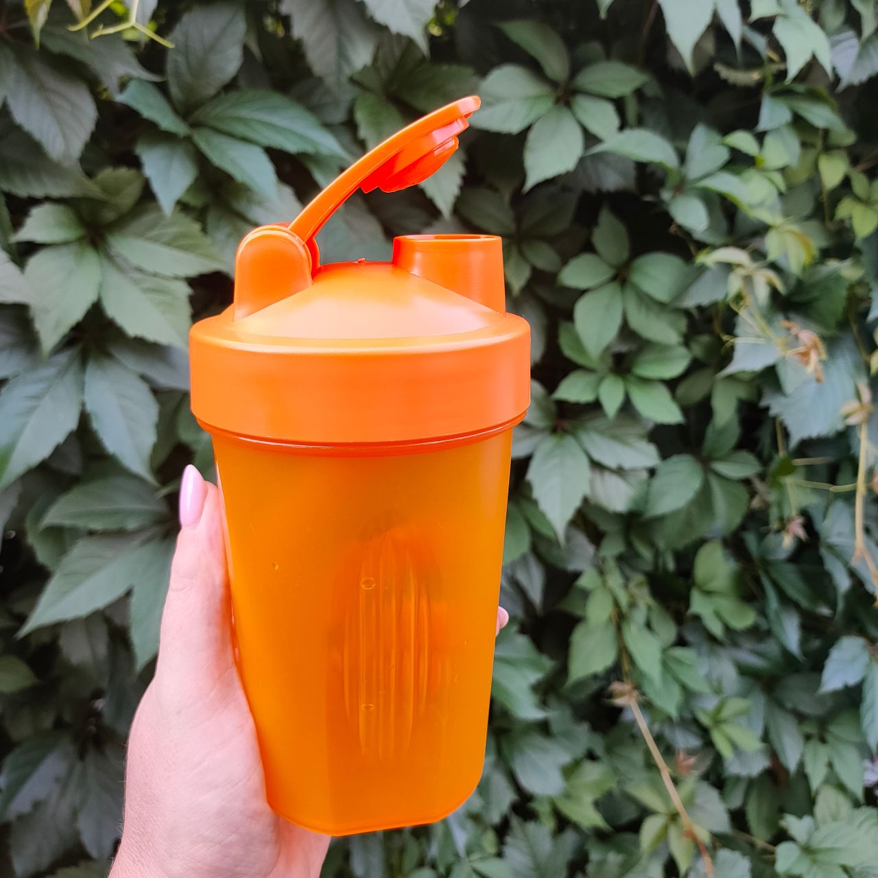 Shaker z kulką metalową trzepaczką 400 ml szczelny POMARAŃCZOWY
