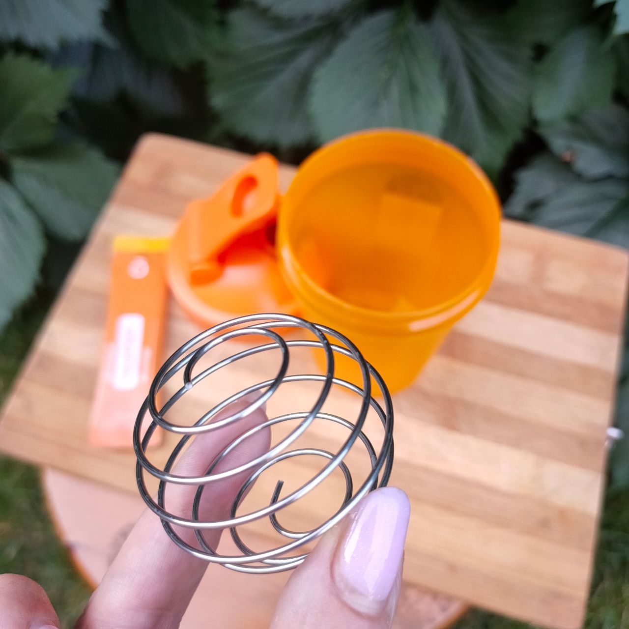 Shaker z kulką metalową trzepaczką 400 ml do kolagenu odżywek białkowych POMARAŃCZOWY