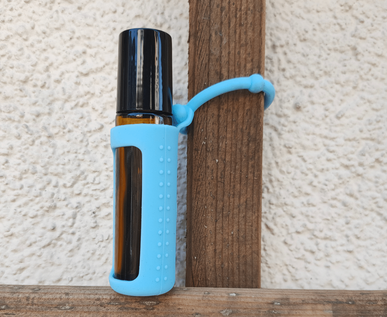 Rollon z brązowego szkła chroni twoją mieszankę przez światłem, a silikonowa osłonka dodatkowo zabezpiecza buteleczkę przed przypadkowym stłuczeniem i zrysowaniem. Dodatkowo dużo łatwiej trzyma się (szczególnie kiedy mam mokre lub tłuste ręce) i używa rollon z matową powierzchnią. Wygodny uchwyt pozwala też zawiesić Twój cenny skarb do plecaka, torebki.