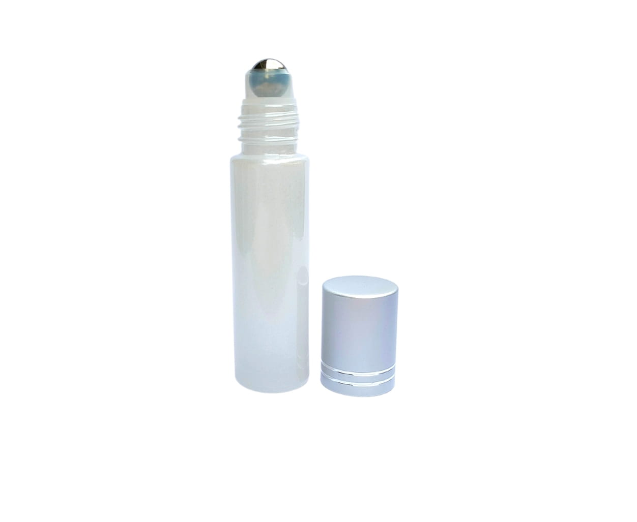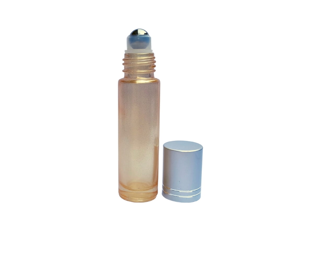 Butelka rollon wykonana z grubego, kolorowego, perłowego grubego szkła. Niezwykle solidne, a jednocześnie z wyglądu delikatne, kobiece. Wykończenie srebną nakrętką z delikatnym żłobieniem nadaje całości subtelny szyk.