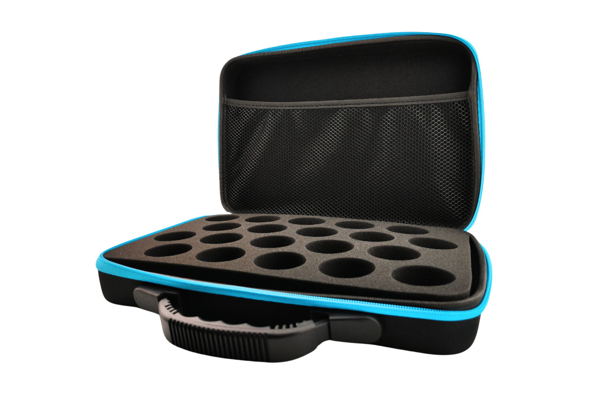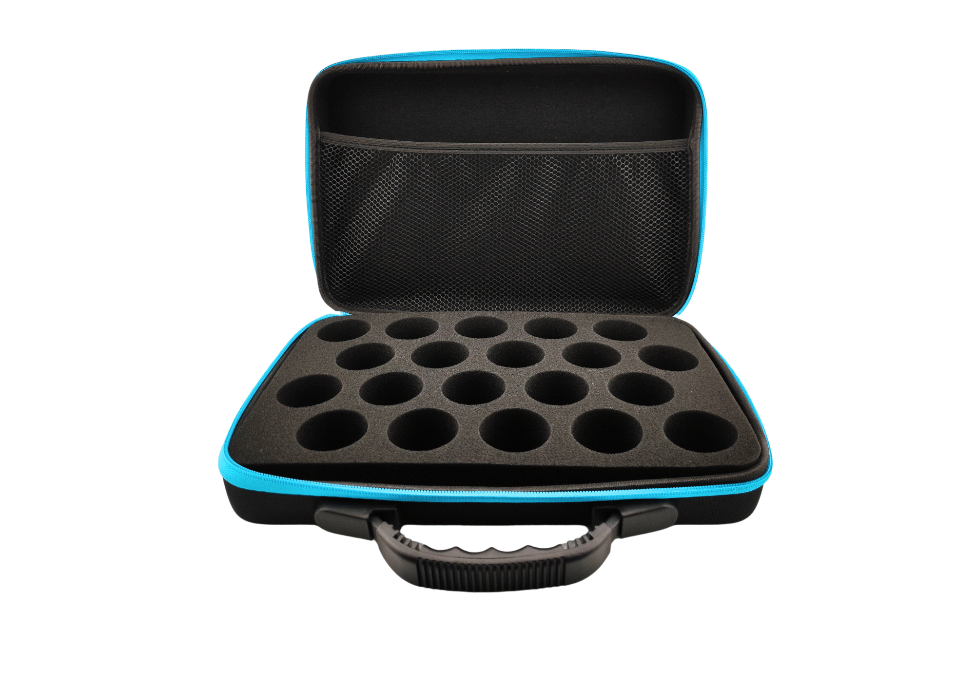 Walizka etui na bańki szklane 20x 3 -3,5 cm czarna z niebieskim zamkiem